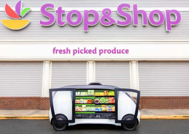 Klanten van Stop & Shop in de regio Bosten kunnen een Robomart-voertuig bestellen via een app op hun smartphone. Wanneer het voertuig toekomt, gaan de klanten naar buiten, ontgrendelen ze de deuren van het voertuig en kiezen ze zelf welke producten (verse groenten en fruit,…) ze willen kopen. Van zodra ze al hun producten gekozen hebben, vergrendelen ze opnieuw de deuren en laten ze het zelfrijdende voertuig zijn weg verderzetten. De RFID- en computervisie technologie in het voertuig herkent automatisch welke producten de klant gekozen heeft, waarna de klant binnen enkele seconden zijn factuur via e-mail ontvangt.