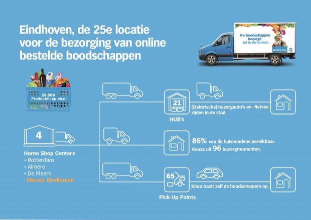 Vanuit deze locatie is het de bedoeling om 40.0000 bestellingen per week bij klanten in het zuiden van Nederland te bezorgen. Ook worden vanuit de nieuwe locatie online bestelde boodschappen klaargezet bij de pick-up points in Noord-Brabant, Limburg en Gelderland. Inclusief alle lokale hubs wordt het de 25ste locatie voor de bezorging van online bestelde boodschappen. Daarnaast telt Albert Heijn momenteel 65 pick-up points.