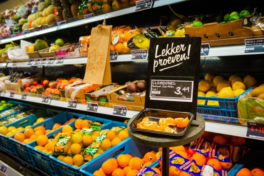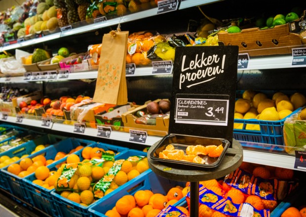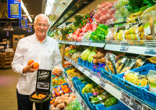 Dat de klanten veel mogen proeven, was Jan ook al opgevallen. “Proeven draagt bij aan de algemene beleving van je klant. Maar zo leren ze ook je assortiment kennen en dat doet je gemiddelde aankoopcijfer omhoog gaan.” Annika Gilissen, AGF-verantwoordelijke van Alvo Zonhoven bevestigt dat meteen: “Twee weken geleden hadden we gele meloenen. Mensen kennen dat nog niet, dus ik heb er eentje open gesneden om te laten proeven. En wat blijkt? We hebben ze al heel goed verkocht!” Iets laten proeven is trouwens ook een vorm van communicatie met je klanten. En voor Wouter is dat aspect zeker zo belangrijk. “We zijn een selfservice zaak maar we willen wél service bieden en advies geven. En dan moet je communiceren met je klanten.”