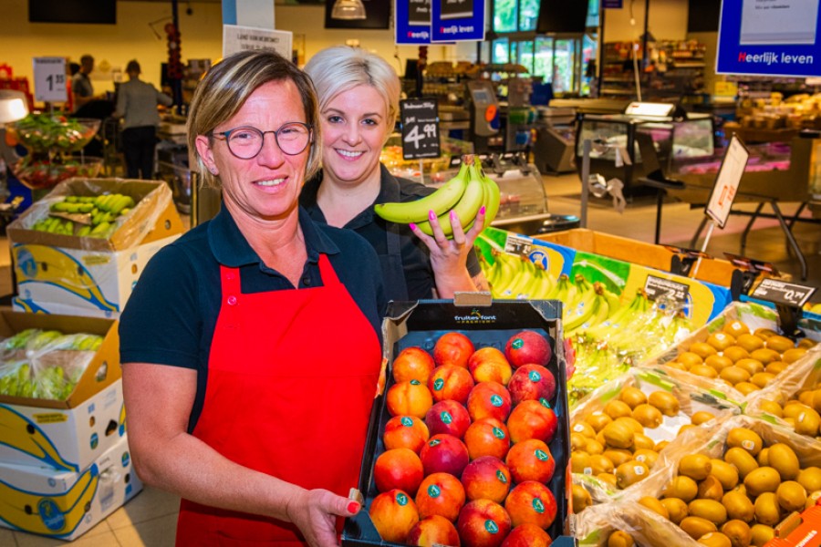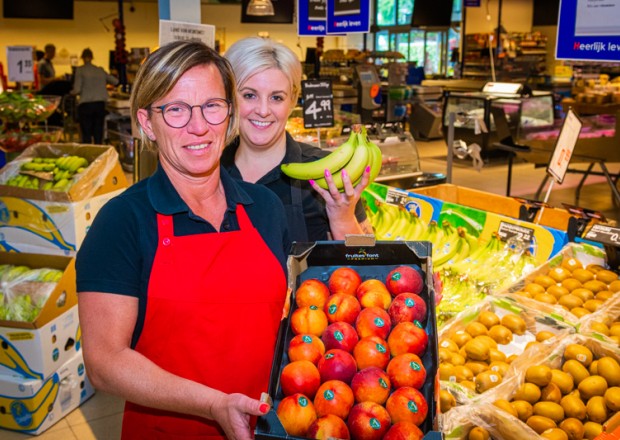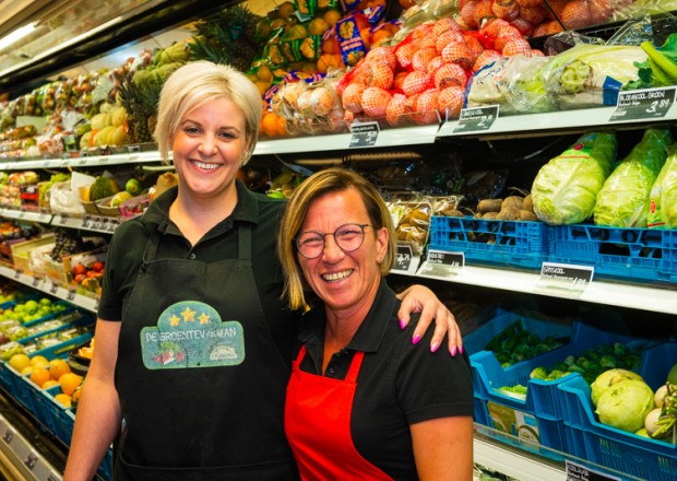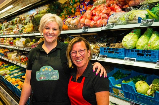 Ginni Miozzo werkt al 25 jaar bij de Alvo in Zonhoven. Ze heeft er bijna alles gedaan maar heeft nu haar hart verloren aan de AGF-afdeling. “Je bent er meer je eigen baas. In tegenstelling tot de kassa, waar je wat meer afhankelijk bent van de klanten. En ik krijg hier ook elke dag inspiratie om te koken,” lacht ze. Annika is ondertussen al tien jaar collega van Ginni. De eerste zes jaar deed ze vooral kassawerk maar nu is ze al vier jaar AGF-verantwoordelijke. “Die uitstallingen maken, daar word ik echt blij van. Ik leer hier zo veel bij over groenten en fruit, en het is heel fijn om dat door te kunnen geven.”