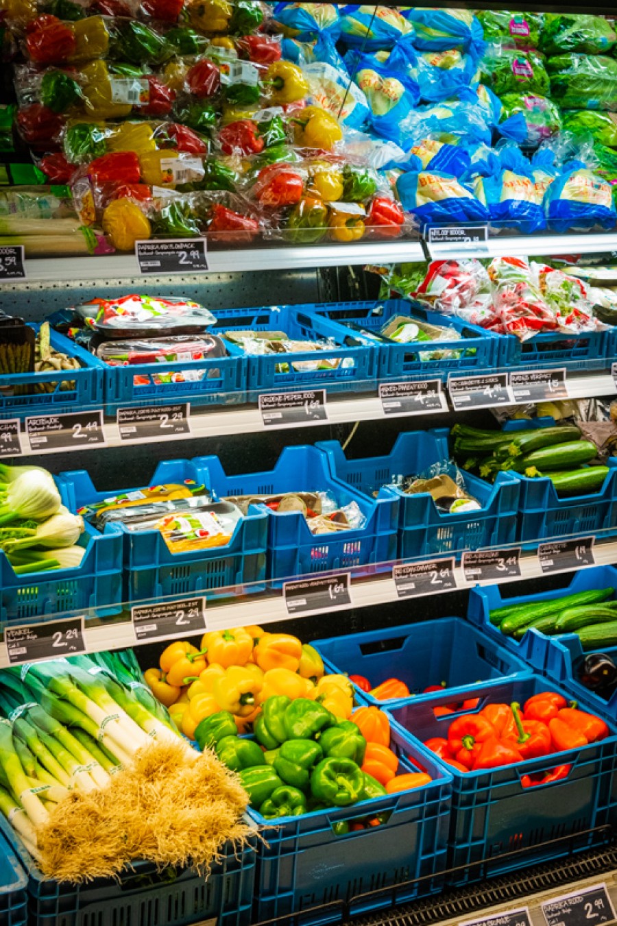 “In de winter kan je bijvoorbeeld wortels langs prei presenteren. Ze worden daar allebei beter van. Ik heb hier ook broccoli langs witloof gezien, heel mooi. Wat we ook altijd adviseren is ‘de komkommer en zijn maat tomaat’. Een rij komkommers tussen je tomaat leggen, daar worden ze allebei mooier van. En het is efficiënt, want in 80% van de gevallen zal de klant zowel die tomaat als die komkommer kopen.”