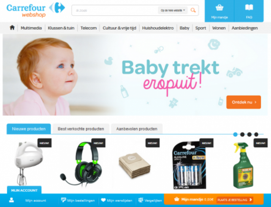 Via carrefour.eu/webshop kunnen de klanten van Carrefour voortaan ook hun niet-voedingsmiddelen van thuis uit bestellen. Naast het permanente assortiment uit de winkels worden op carrefour.eu/webshopook producten verkocht die louter online worden aangeboden.