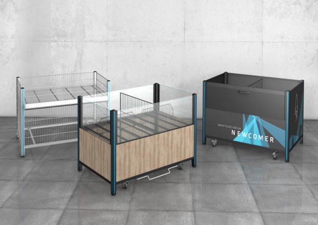 Alle drie de varianten beschikken over een profielvoet met appconcept, die de zijwanden met de etages verbindt en individueel van decoratieve strepen voorzien kan worden. Elke uitvoering is vast of verrijdbaar met wielen en remmen verkrijgbaar.