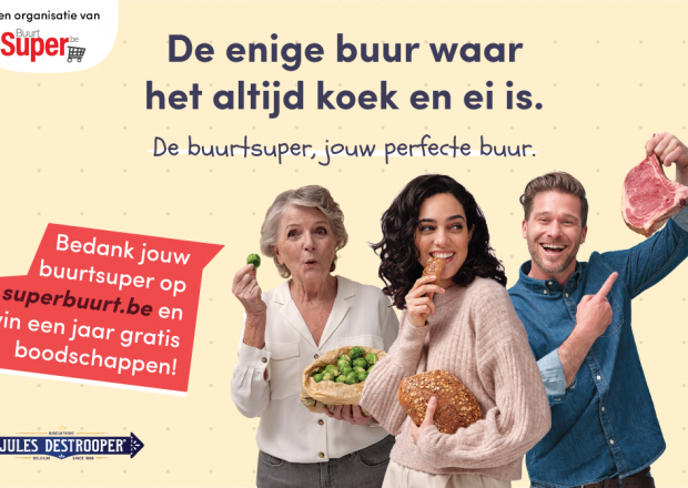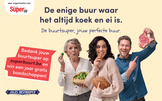 Bij goede buren kan je altijd terecht voor een eitje, suiker,… Maar is er ook een buur waar je mag aankloppen voor een kilo spruitjes, een volkoren brood of biefstuk? Jawel! ‘De buurtsuper, jouw perfecte buur’ is de slogan en het thema van onze imagocampagne 2020.