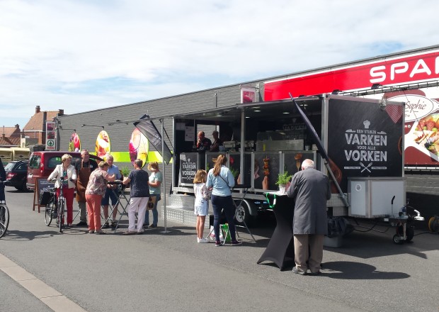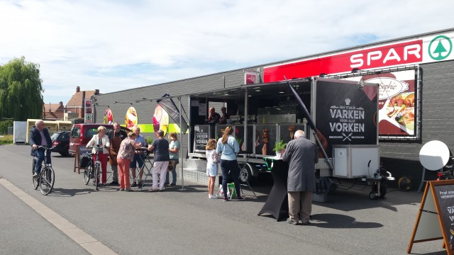 Foodtruck 'Varken voor alle vorken' bij Spar Sint-Eloois-Winkel