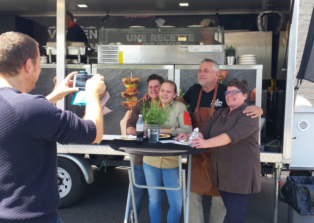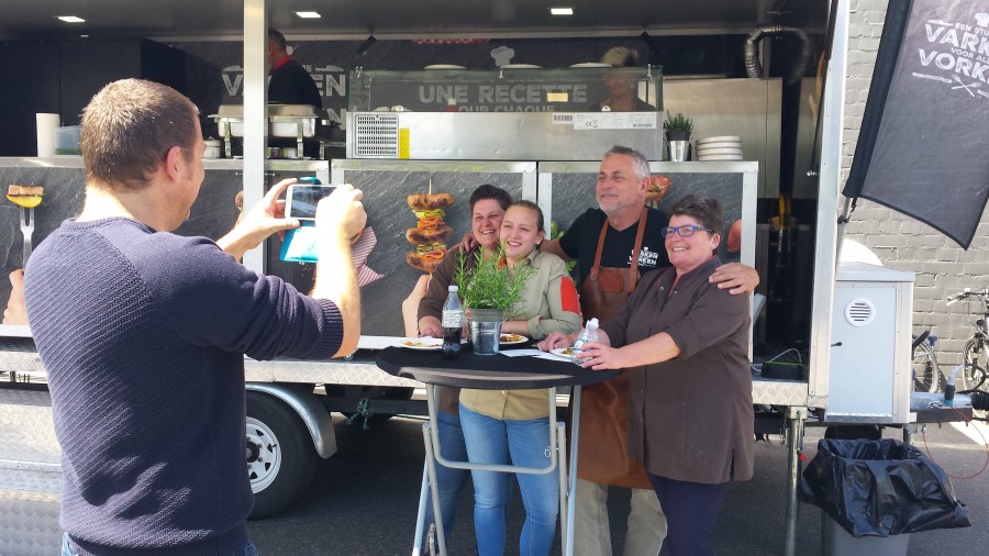 "In de winkel hadden we voldoende reclame opgehangen om de foodtruck aan te bevelen. Er liep zelfs een facebook-actie. Mensen konden aan onze foodtruck een foto laten nemen samen met Peter Van Asbroeck. Als ze die foto op de facebookpagina van de Sparwinkel postten, konden ze een waardebon van 50 euro winnen. Deze actie hing uit op blaadjes en werd ook omgeroepen in de winkel. Dat bracht heel wat in beweging, niet alleen voor de foto, maar ook voor de proevertjes."