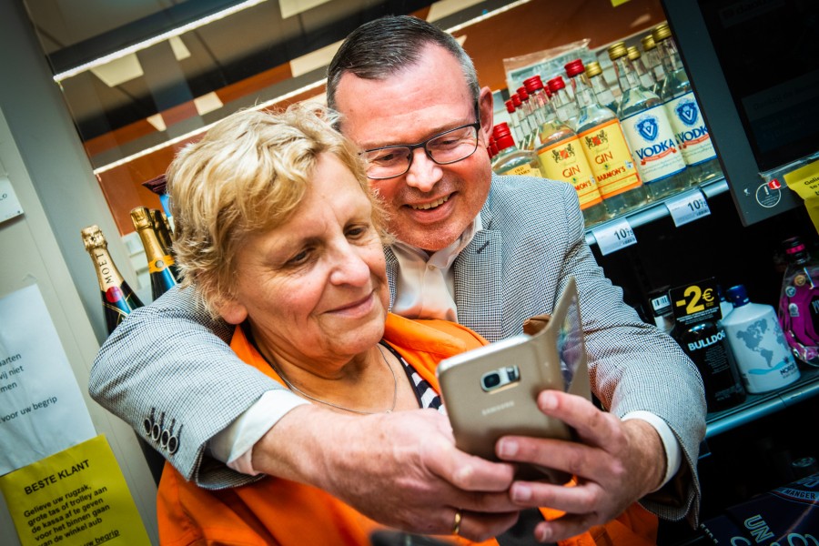 Gisteren werd Christiane gehuldigd door Buurtsuper.be, de organisatie binnen Unizo voor zelfstandige supermarkten, en haar werkgever. Ze wordt zelfs het boegbeeld van een nieuwe campagne die op zoek gaat naar het beste buurtsuperteam. Want hier in de Carrefour weten waarom ze Christiane elke dag zo graag zien komen: haar kassa klopt altijd. En geen dag meldt Christiane zich ziek. “Uren en uren moest mijn man vroeger op mij wachten. Ik bleef altijd tot de laatste en rekende nooit een overuur aan. We zijn zelfs eens in het midden van de nacht teruggereden, omdat ik vergeten was de poort te sluiten.”