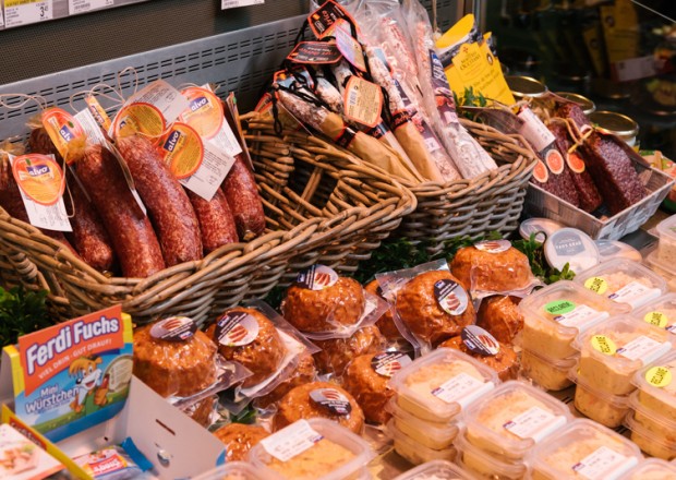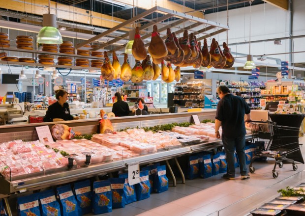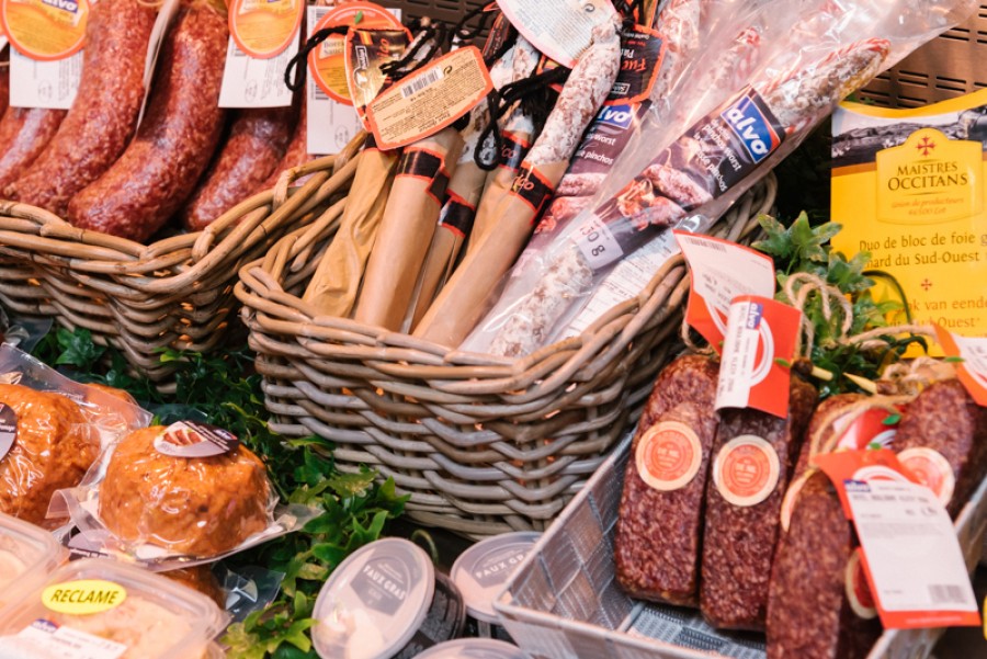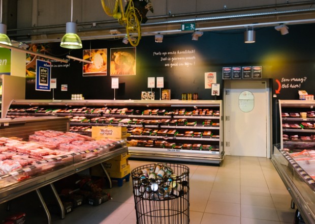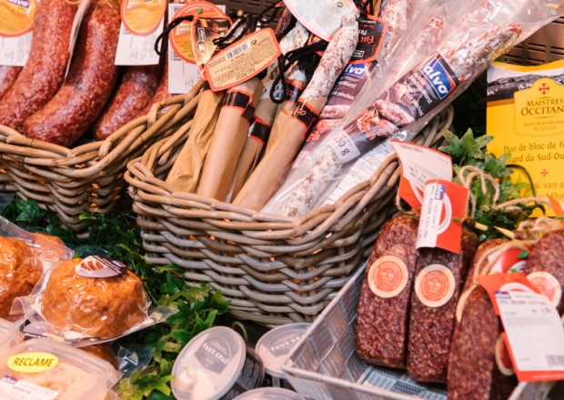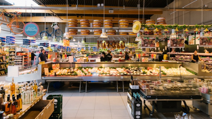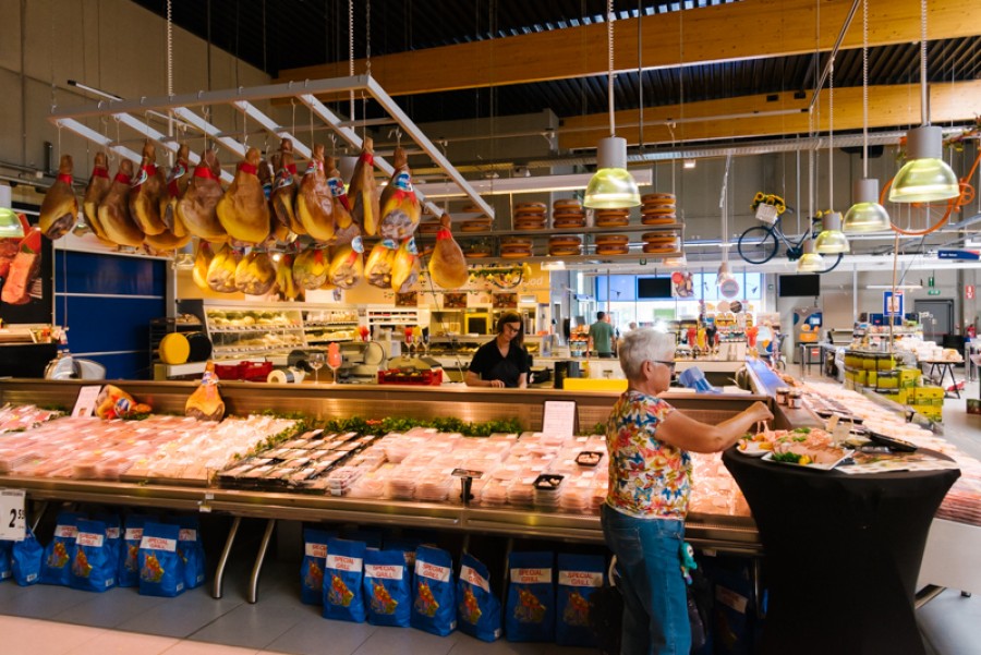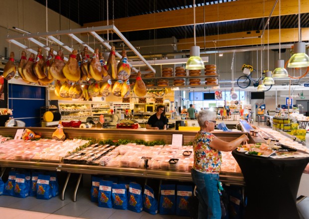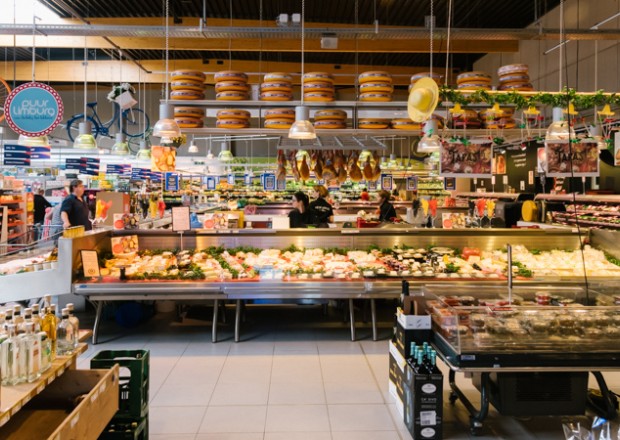 “Tien jaar geleden hebben Jan Dams en ik wat rondgereisd om inspiratie voor de winkels op te doen”, vertelt directeur Wouter. “Toen we in Barcelona ‘De Mercat de la Boqueria’ – de grootste versmarkt van Spanje – zagen, wisten we: dit moeten we hebben!”. Zijn vlees- en charcuterie afdeling heeft dan ook een ruime, centrale en vierkante toog waar alle kaas en charcuterie wordt versneden. De klanten nemen hun producten uit de koeltogen er rond. Zo zien ze dat de producten dagvers worden bereid.