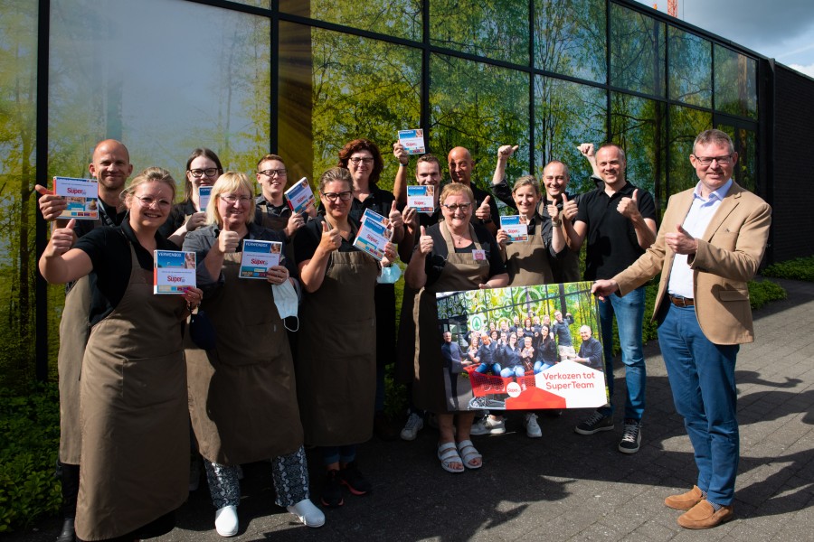 Alle medewerkers van de Super Teams krijgen een Bongo bon en één mooie teamfoto om in de winkel op te hangen. Luc Ardies, directeur van Buurtsuper.be, ging dit jaar de prijzen persoonlijk overhandigen aan de winnende teams.