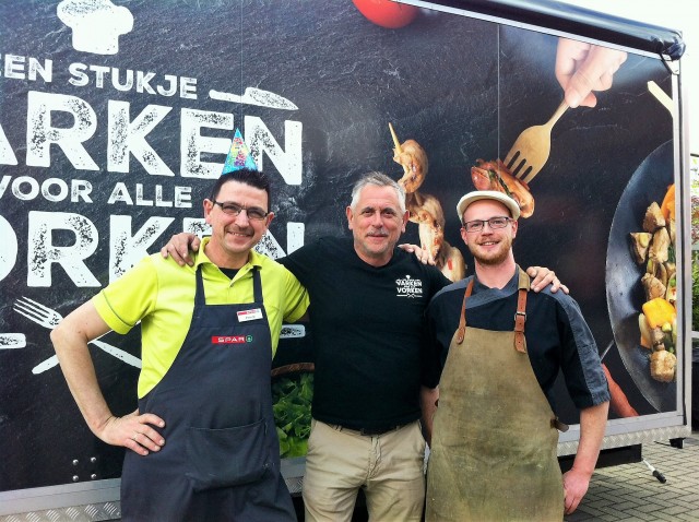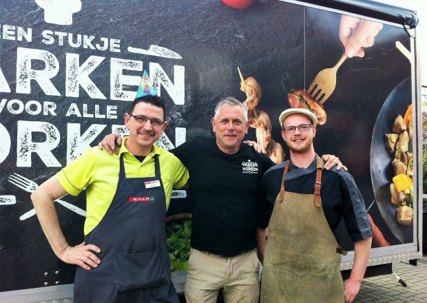 Zaterdag jongstleden troffen de klanten van Spar Wijchmaal op de parking van hun vertrouwde buurtsuper de foodtruck 'Varken voor alle vorken' aan, waar zij een bordje konden afhalen met 3 hapjes, aangeboden ter promotie van Belgisch varkensvlees (Lekker Van Bij Ons).