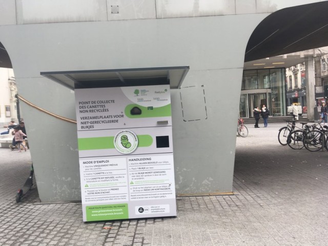 In het Brussels gewest staan sinds begin april drie automaten waar consumenten blikjes kunnen inleveren in ruil voor een aankoopbon ter waarde van vijf cent per blikje. Het proefproject met statiegeld loopt nog vier maanden, maar is nu al - volgens een artikel in Gazet van Antwerpen - een succes.