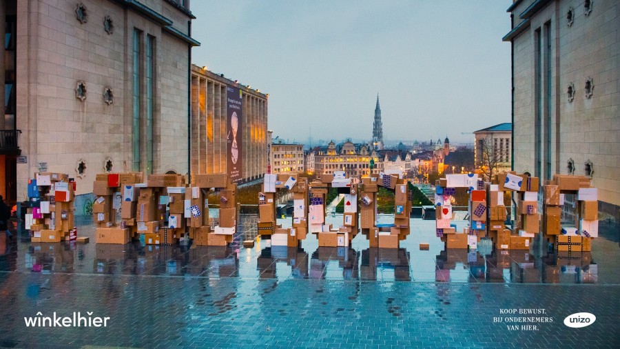 Vorige week organiseerde UNIZO een nieuwe actie, om de aandacht te vestigen op de 8 miljard euro die vorig jaar wegstroomde uit onze economie, door de massale aankopen bij buitenlandse (web)winkels. Met een indrukwekkende stapeling dozen afkomstig van pakketjes die in België geleverd werden door buitenlandse webshops werd het getal ‘8 miljard’ gevormd op de Kunstberg in Brussel.