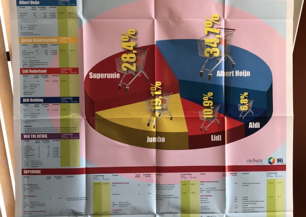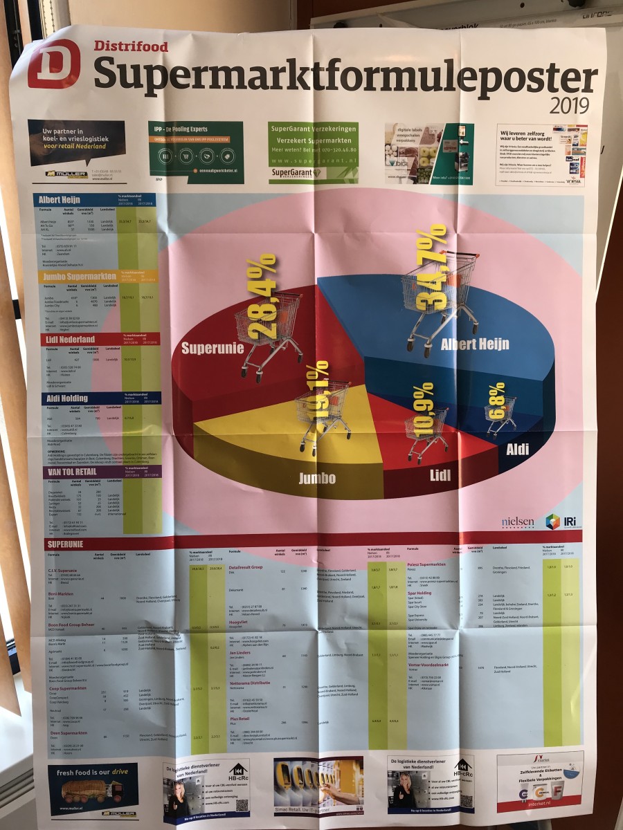 Tijdens de lunch werden we ontvangen bij Vakcentrum, onze Nederlandse zusterorganisatie, door Harrie ten Have (voorzitter), Theo Urselmann (beleid) en Edwin Mak (bedrijfseconomisch adviseur). Ze gaven een toelichting over de Nederlandse supermarktsector, mét zeer interessante cijfer.