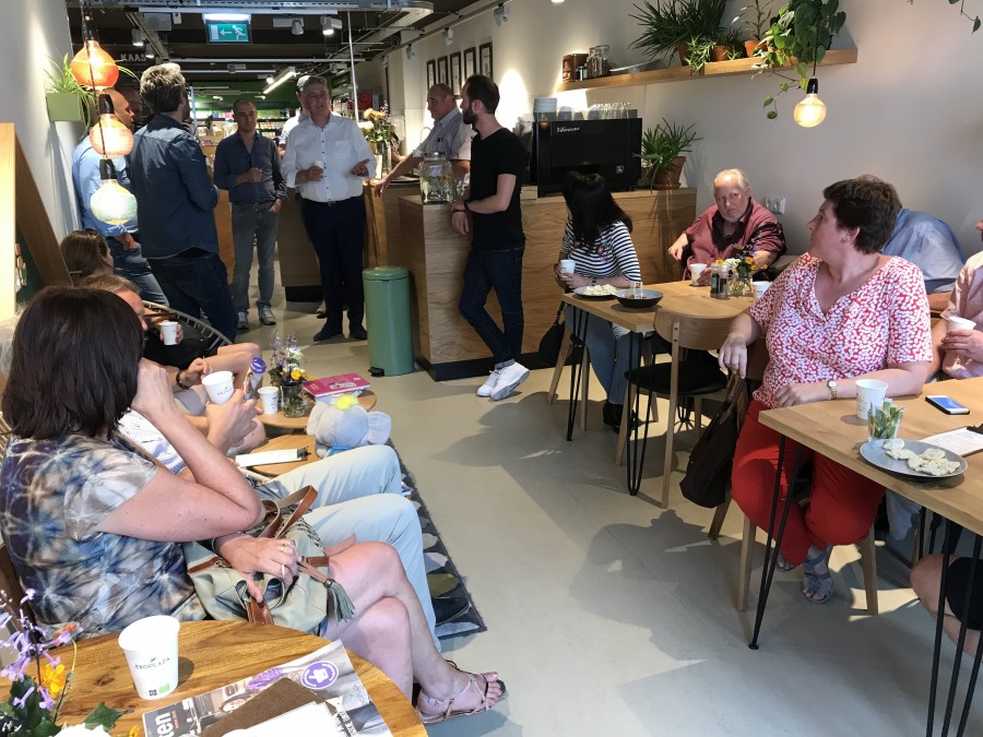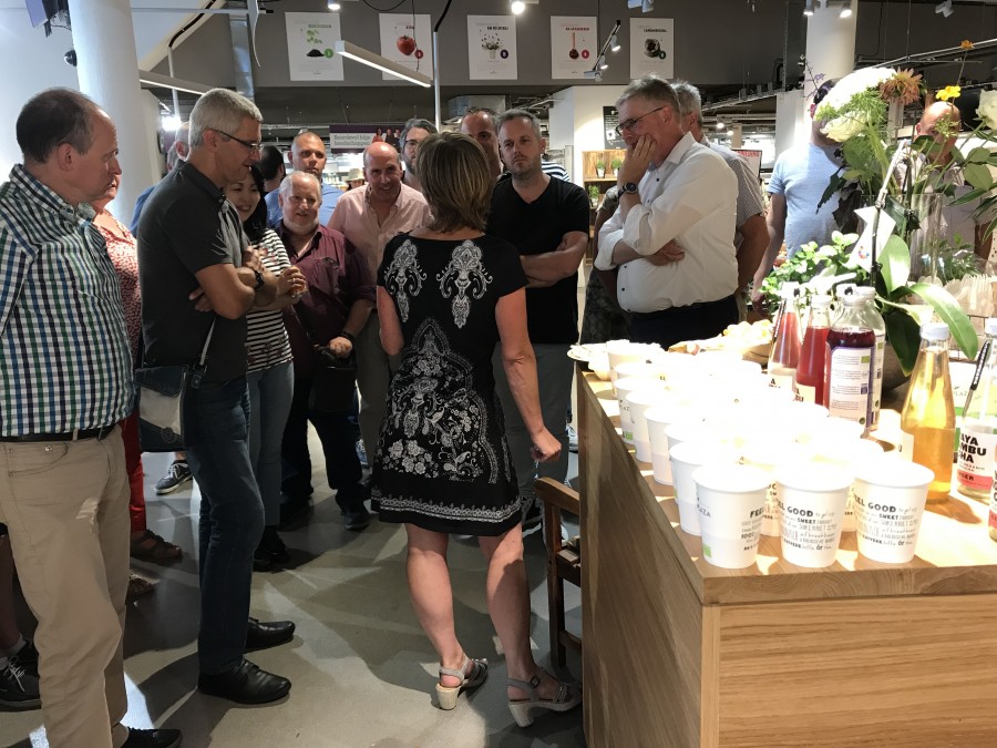 We sloten onze dag af bij Ekoplaza, Rotterdam, waar we hartelijk (en met een hapje en drankje) werden ontvangen door de goedlachse zaakvoerder Rina v.d. Stok. Ekoplaza is een biologische supermarktketen die haar klanten wil ondersteunen in een gezonde, biologische leefstijl. Dankzij een duurzame samenwerking en een sterke visie op bewust lekker eten kon Ekoplaza de afgelopen jaren groeien naar een keten van circa 70 winkels.