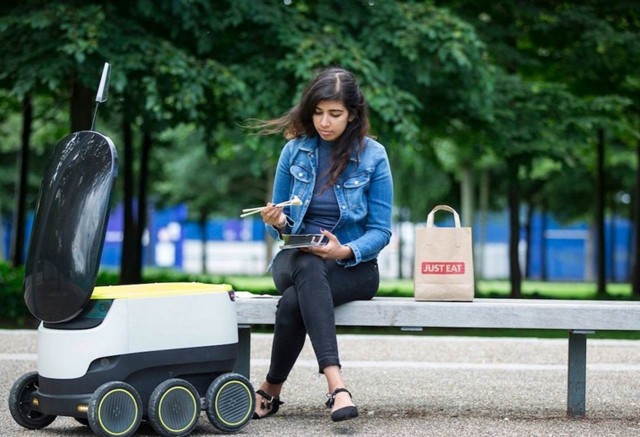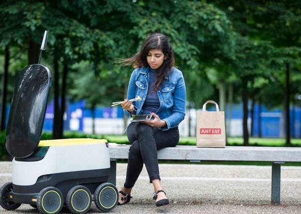 Just Eat en de Estlandse startup Starship testen zelfrijdende robots voor maaltijdbezorging in Londen. De robot rijdt stapvoets en kan alleen worden ontgrendeld door een code, die de Just Eat-klant krijgt bij zijn bestelling. Als de robot op twee minuten afstand is, krijgt de klant een melding op zijn telefoon. Alle bestellingen worden volgens Starship binnen een half uur bezorgd.