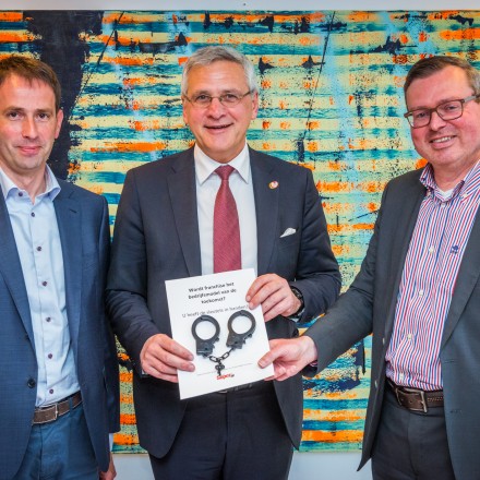 Vandaag ontmoette Buurtsuper.be Minister van Economie en Consumentenzaken Kris Peeters. Onder de slogan “Wordt franchise het bedrijfsmodel van de toekomst? U heeft de sleutels in handen!” bezorgde een Buurtsuper.be delegatie aan de Minister een pamflet met speelgoedhandboeien én sleutels.