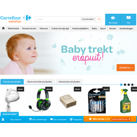 Via carrefour.eu/webshop kunnen de klanten van Carrefour voortaan ook hun niet-voedingsmiddelen van thuis uit bestellen. Naast het permanente assortiment uit de winkels worden op carrefour.eu/webshopook producten verkocht die louter online worden aangeboden.